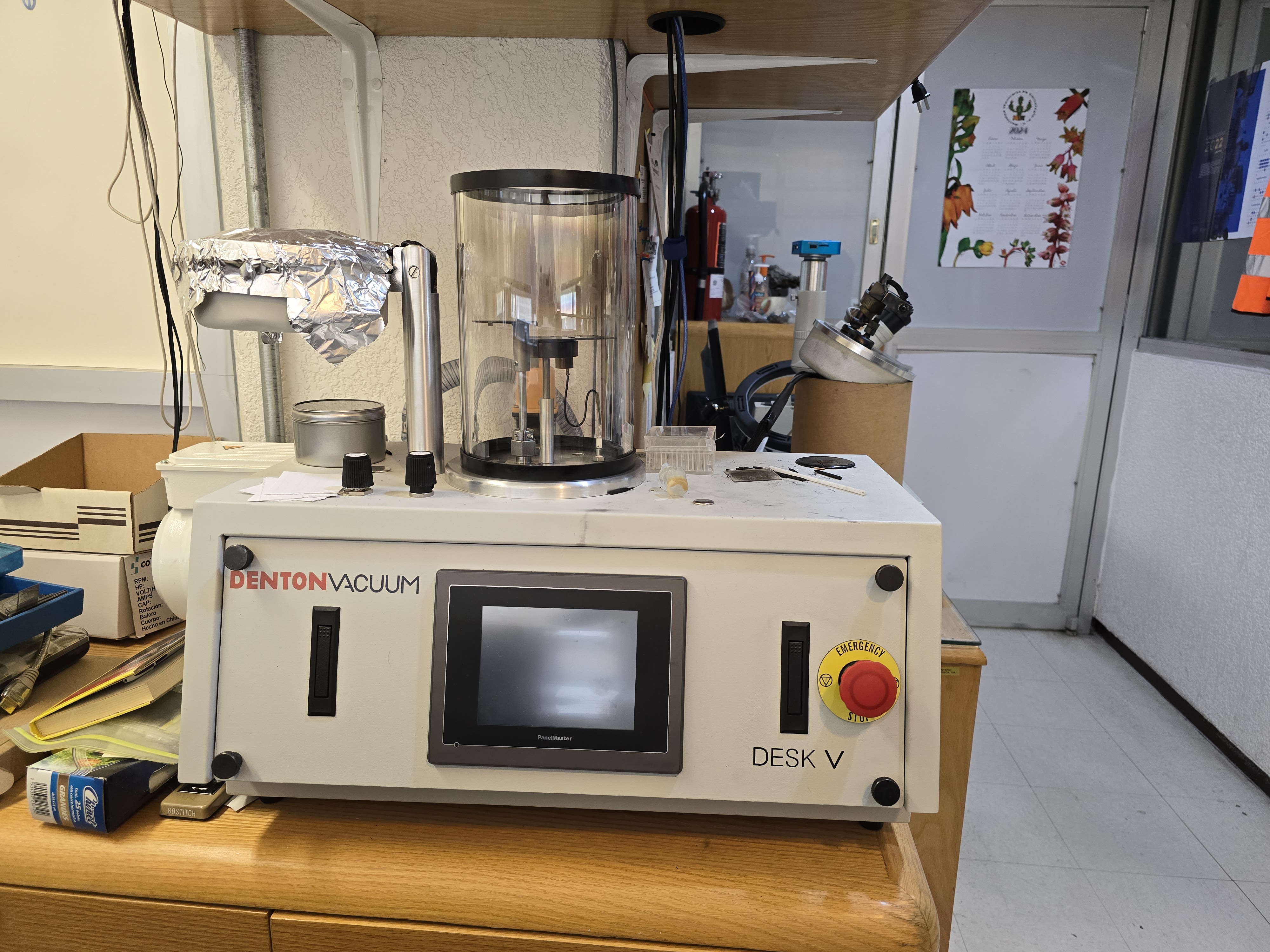 - Sputtering, DENTON VACUUM, Desk V para cubrir muestras con grafito y oro.