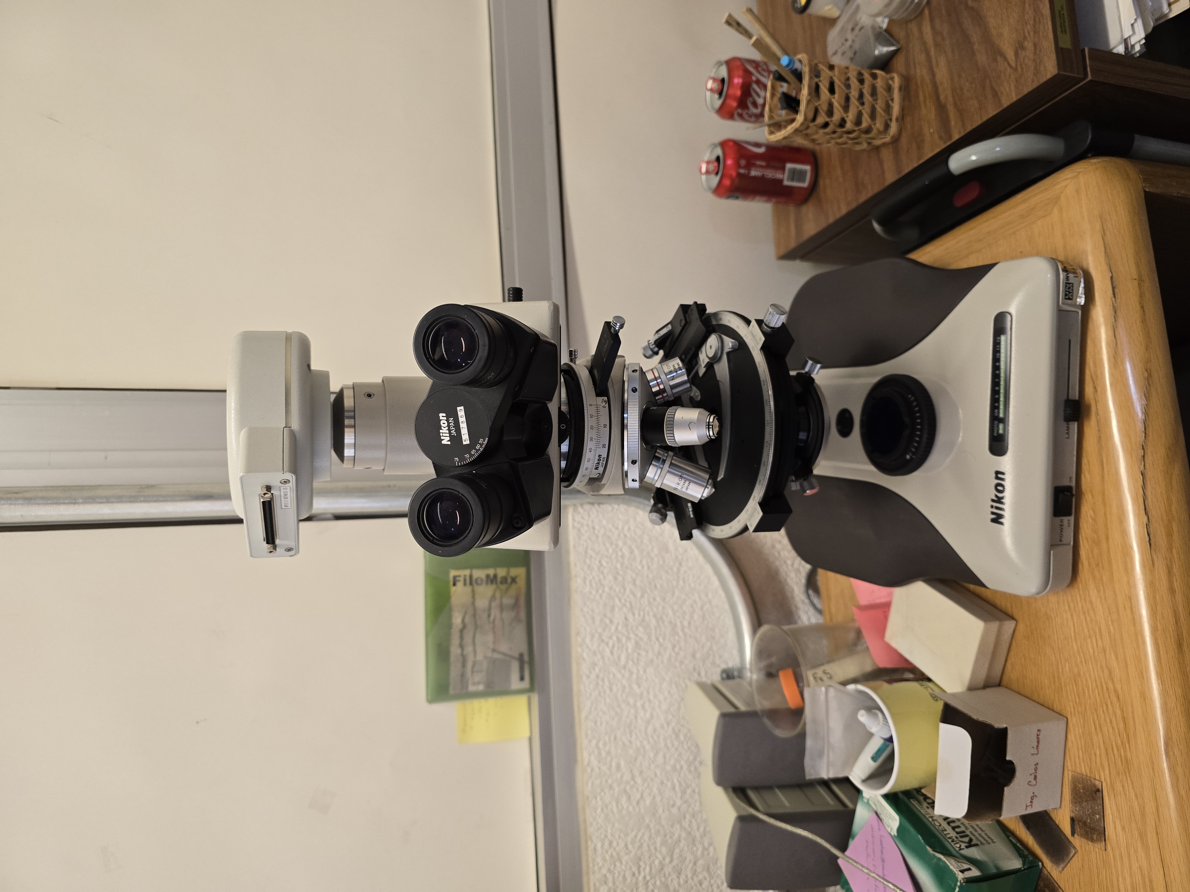 - Microscopio óptico NIKON, Optiphot2-Pol con luz transmitida (petrográfico).