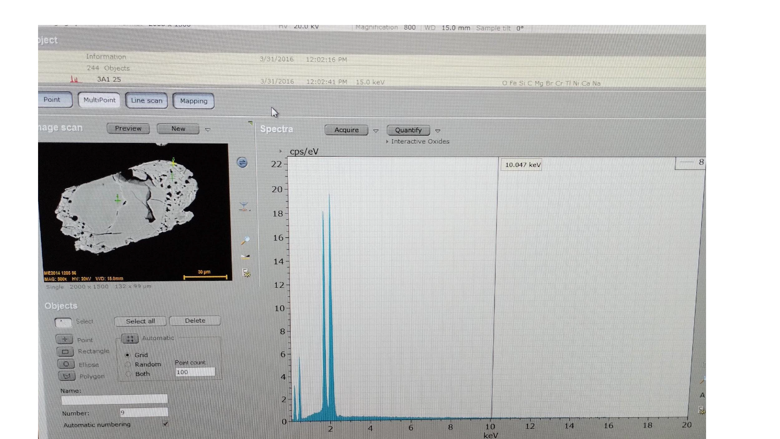 Técnicas de microanálisis por espectrometría de energía dispersiva de rayos X (EDS). Estas técnicas permiten realizar análisis tridimensionales de objetos tan pequeños como una micra y obtener imágenes bien definidas con aumentos hasta de 30 000 a 40 000x además de gran profundidad de campo y gran resolución en la imagen y son aplicadas en el estudio de fósiles, minerales, rocas y en el estudio de materiales de otras áreas del conocimiento como edafología, arqueología, biología y ciencias de materiales entre otras. El espectrómetro de energía dispersiva de rayos X (EDS) adyacente al microscopio electrónico, permite realizar una identificación muy rápida cualitativo y/o semicuantitativa de los componentes mineralógicos de los materiales de interés.